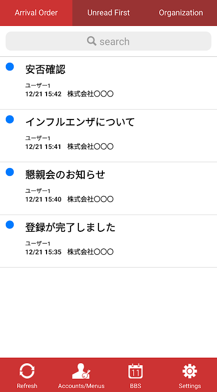 Confirmation de sécurité du sinistre et de l'urgence. Ou, disponible sous forme de réseau de contact, babillard au moment de la normale.