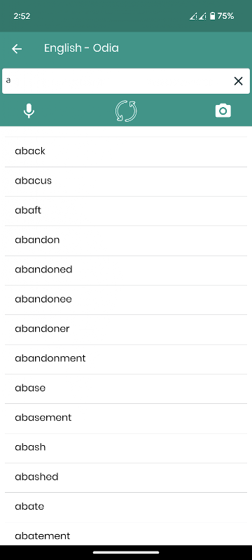 Vous pouvez rechercher des mots dans la langue anglaise ou en utilisant la langue Odia avec une interface utilisateur magnifiquement conçue et pouvez obtenir un sens en langue Odia, en anglais et en hindi. Les mots anglais peuvent également être recherchés à l'aide des fonctionnalités de conversion vocale en texte implémentées dans l'application.