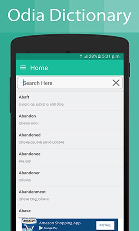 L'un des meilleurs dictionnaires Odia dans le Play Store. vous pouvez apprendre la langue Odia très rapidement et facilement à partir de cette application utilitaire. Dictionnaire Odia Contient plus de 30 000 mots anglais avec plus d'une signification Odia et la fonctionnalité la plus puissante est que toutes les données sont hors ligne, vous n'avez pas besoin d'une connexion Internet pour utiliser ce dictionnaire Odia.