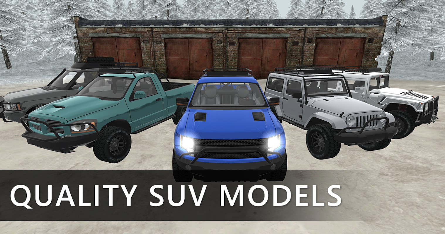Realistic off-road SUV simulator in the winter forest.