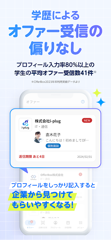 ・Utilisé par environ 240 000 étudiants à la recherche d'un emploi ! (Données d'utilisation des diplômés d'OfferBox 2024/à fin mars 2024)