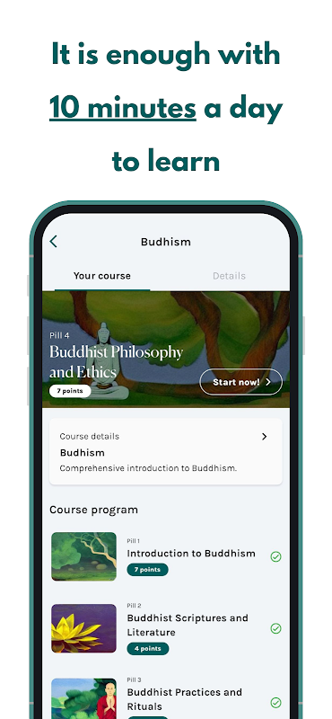 Vous avez accès à des centaines de cours où vous pouvez en apprendre davantage sur l'histoire, la science, l'art, la psychologie, la philosophie, l'économie, les affaires, la spiritualité, la religion et bien d'autres disciplines, le tout dans une application mobile pour devenir une personne plus cultivée pendant que vous jouez.