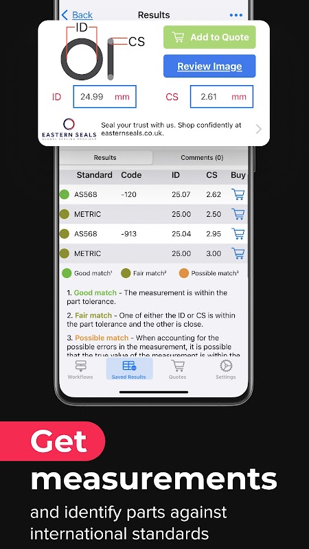Mesurez et identifiez avec précision les joints toriques à l'aide de votre téléphone.