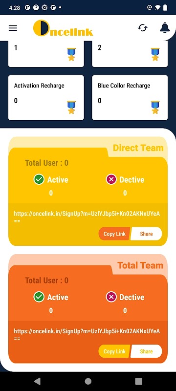 Oncelink is an internet helper where internet recharge in the form of reward is provided to user of oncelink; there are four type of internet recharge in the form of reward and this service is provided in India on three network like jio,airtel,Vi by oncelink and user will get internet recharge reward of 28days on every activation so make your friend activated and get a lot of internet recharge in the form of reward.