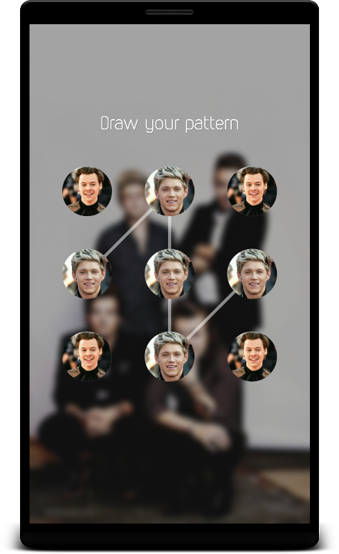 This lock screen is based on 1D theme. There are many OneDirection HD backgrounds in this app. You can unlock your phone using different methods like Slide to unlock, enter passcode, draw pattern, pin, etc.