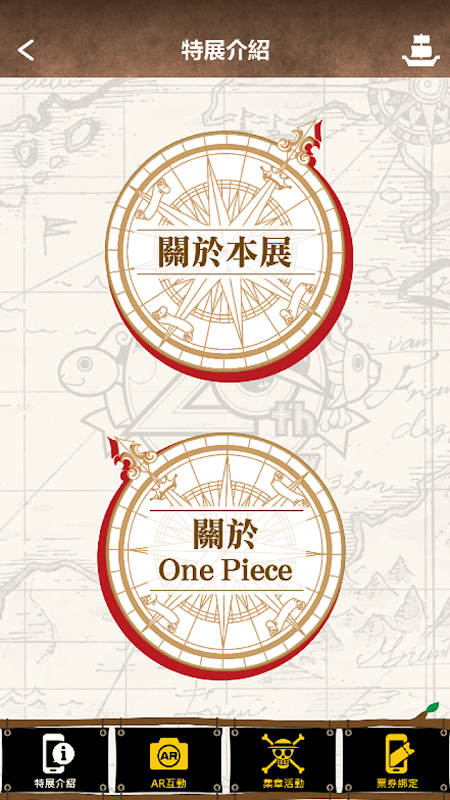 本 APP 將與夥伴一起前往「 ONE PIECE 動畫二十週年紀念特展 」冒險,並提供以下專屬服務,一起回顧動畫二十週年的冒險感動: