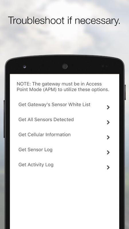 • Connectez-vous directement à une passerelle sur WiFi pour obtenir des données qui peuvent être utilisées à des fins de dépannage.