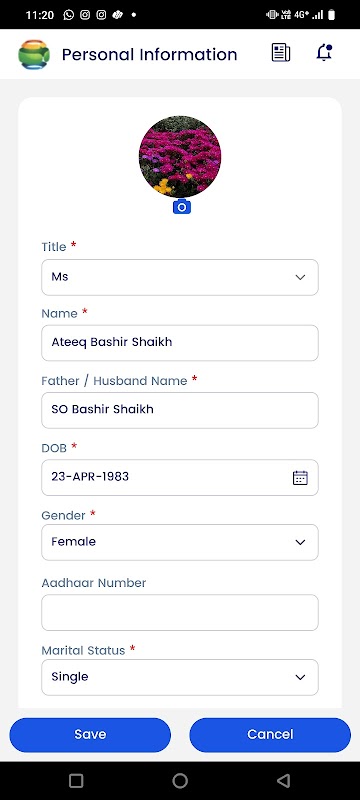 Configuration du profil : une option en libre-service permettant aux employés de remplir des informations de base, de télécharger des documents et d'ajouter des informations personnelles via Onex Sampark.
