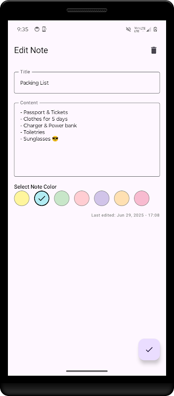 ✍️ Prise de notes rapide : Ajoutez des notes avec un titre, un contenu et une couleur pour une meilleure lisibilité.