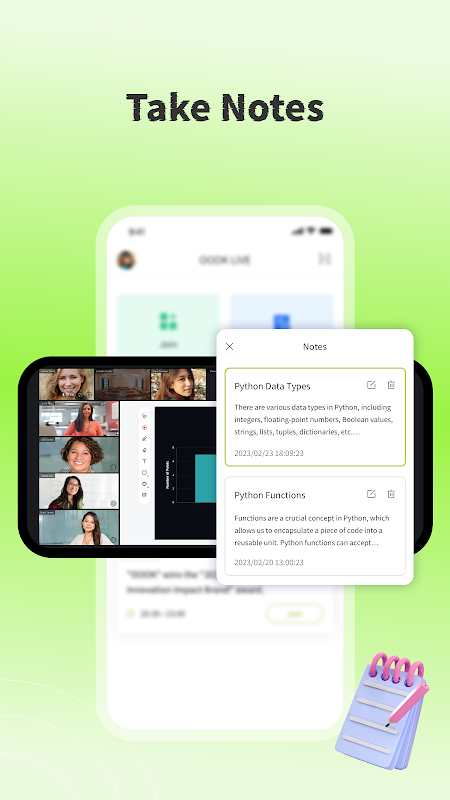 OOOK LIVE est un outil de diffusion en direct à haute efficacité qui offre des fonctionnalités telles que l'interaction audio, le changement de disposition, la lecture en différé, la prise de notes, etc.