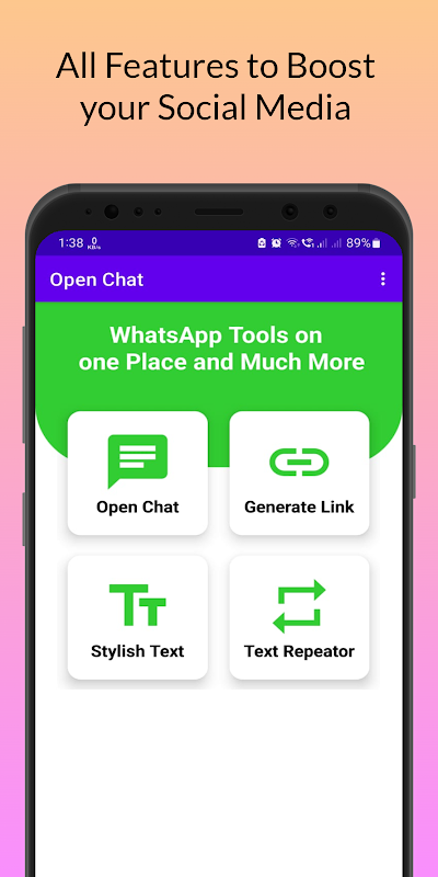 Open Chat vous permet d'envoyer des messages WhatsApp directement au numéro de téléphone, sans l'enregistrer dans vos contacts.