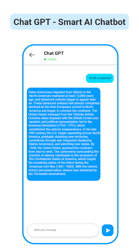 The app is user-friendly and easy to use. Simply open the app and start typing your question, and the AI chatbot will respond in real-time. You can have a conversation with the chatbot just as you would with a human, and the chatbot's responses are designed to be natural and engaging. The app also saves your previous conversations, so you can go back and refer to them whenever you want.