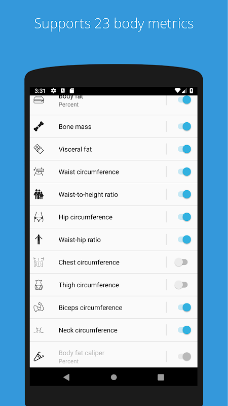 Monitor and track your weight, BMI, body fat, body water, muscle and other body metrics in an open source app that: