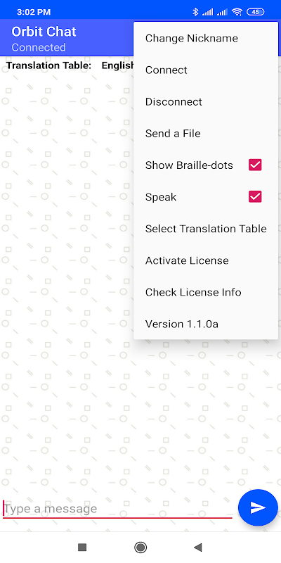 Le système permet à une personne voyante d’utiliser une interface utilisateur de chat ou de messagerie familière pour saisir des messages à l’aide du clavier à l’écran du téléphone ou de la tablette, qui sont immédiatement traduits et affichés sur l’appareil Orbit Reader 20 de l’utilisateur sourd-aveugle en braille. L'utilisateur sourd-aveugle tape ses messages en braille en utilisant le clavier braille sur l'Orbit Reader 20 et ceux-ci sont traduits en texte brut et affichés instantanément sur le téléphone ou la tablette. L'application est auto-exprimée, ce qui permet à une personne aveugle de l'utiliser pour communiquer avec une personne sourde-aveugle sans avoir besoin d'un logiciel spécial de lecture d'écran.