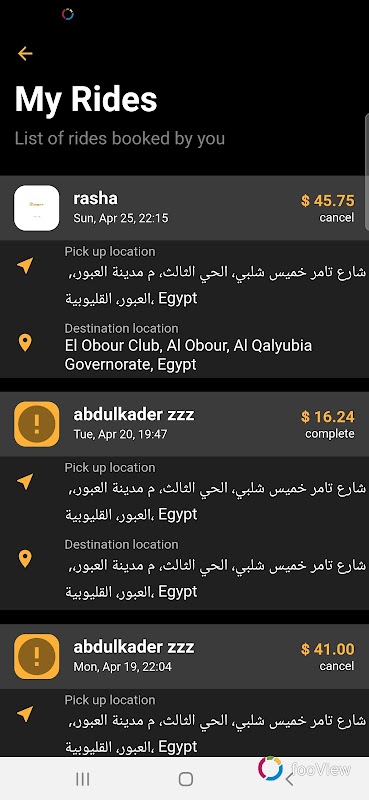 L'application chauffeur est dédiée à la réservation de trajets en pré-sélectionnant le type de véhicule et le coût du trajet