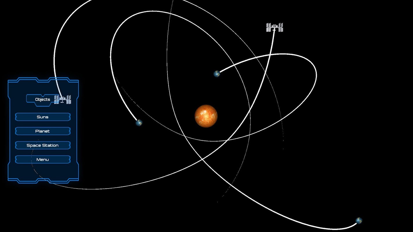 Touch and Launch planets and the international space station ISS with your finger, and try to get them into stable orbits around the sun.