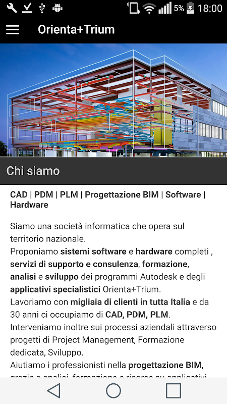 Nous sommes une société d'informatique opérant dans tout le pays. Nous offrons des systèmes complets de matériel et de logiciels, de soutien et de consultation des services, la formation, l'analyse et le développement de programmes Autodesk et des applications spécialisées Orienta + Trium.