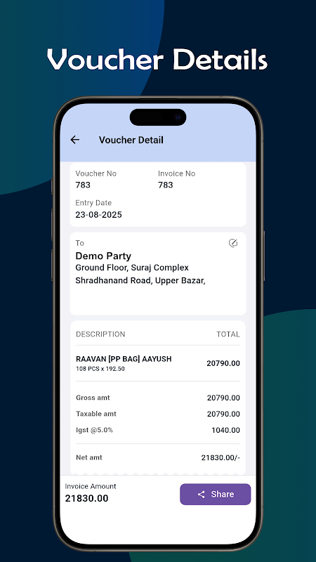 L'utilisateur peut utiliser OrnetBiz pour vérifier Ledger & Outstanding et partager des rapports et des documents au format pdf.