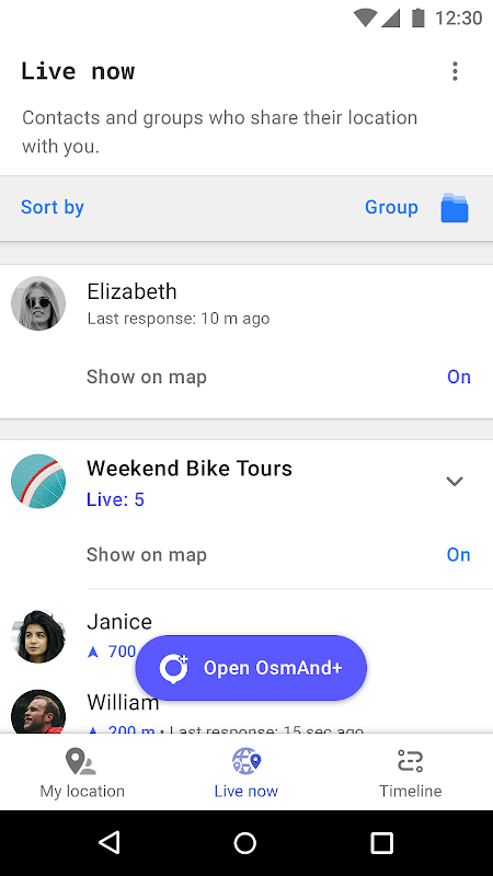 • Afficher l'emplacement des contacts et des groupes en temps réel sur la carte dans OsmAnd