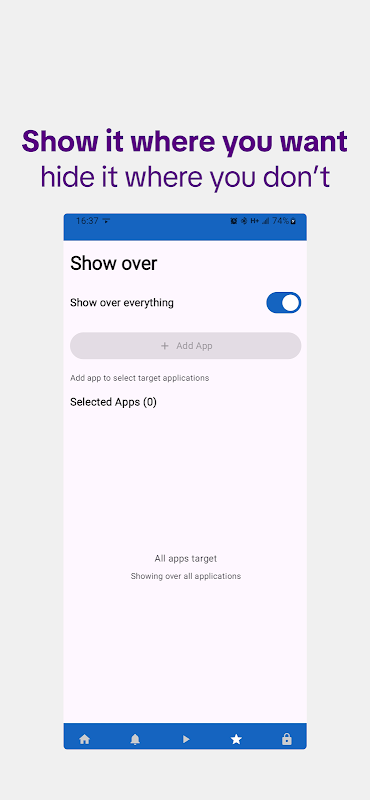 Exclusions : choisissez les applications qui doivent masquer la superposition (par exemple, les applications bancaires ou sensibles).
