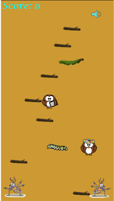 Owlfred essaie d'impressionner sa petite amie, Flora. Lorsqu'il la rattrape, il gagne 10 points et est enfermé dans une bulle lui permettant de sauter plus haut pendant une courte période. Si l'aigle l'attrape, il perd 5 points. La chenille lui donne une force de saut supplémentaire. Méfiez-vous de la plate-forme factice. Vous tomberez directement à travers.
