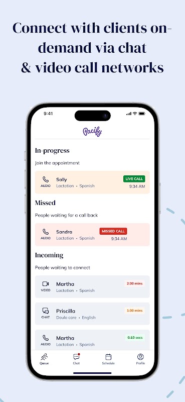 L'application Pacify fournit un accès à la demande à un réseau national d'experts maternels et pédiatriques, disponible pour consultation 24h / 24 et 7j / 7 via des visites vidéo et audio.