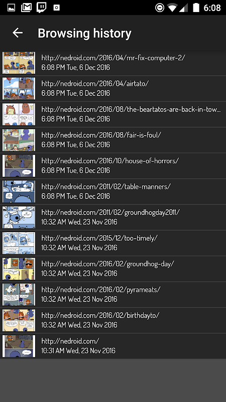 * Prise en charge de bande dessinée Open Source - nous sommes dédiés à une liste ouverte de bandes dessinées numériques pris en charge. Nous ne sommes pas un service exclusif et je suis à la recherche personnellement toujours du nouveau matériel, donc j'ai ouvert l'ajout de la bande dessinée à cette application à tout le monde. Les instructions sur la façon d'ajouter des bandes dessinées Web pris en charge et des exemples de dessins animés actuellement pris en charge peuvent être trouvés ici https://github.com/oseparovic/comic_selectors. Vous pouvez aussi voter pour ajouter de nouvelles bandes dessinées dans l'application si vous ne voulez pas passer le temps à coder vous-même.
