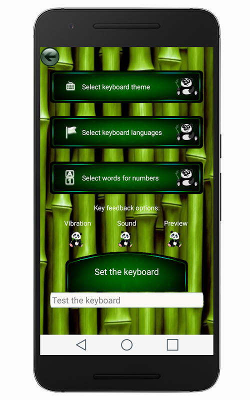 Décorez vos raccourcis clavier avec des photos de panda en quelques étapes simples! La messagerie texte deviendra amusant dès que vous commencez à utiliser cette application! Entrez dans le monde la plus étonnante des animaux mignons et personnaliser vos appareils mobiles! Ces milieux de panda belle apparence sur tout appareil et vous aurez une vue merveilleuse chaque fois que vous tapez un message!
