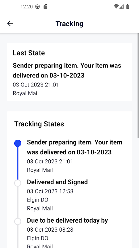 1. Dates de livraison estimées : restez au courant des dates de livraison estimées de vos envois, toutes affichées de manière pratique dans l'application. Plus besoin de deviner quand vos colis arriveront.