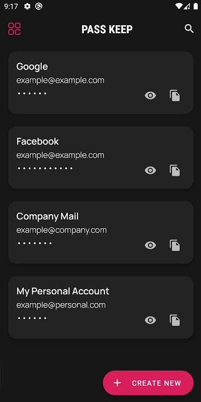 Pass Keep stocke tous vos comptes et ses mots de passe au même endroit.