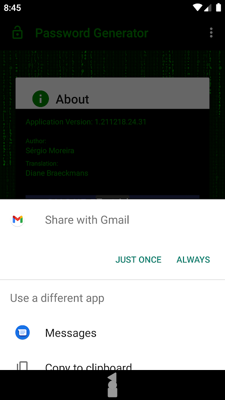 This app generate random password, and copy the result automatically to the clipboard, so you can use it easily
