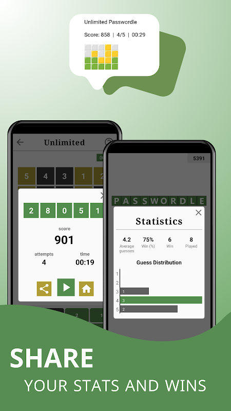 À la fin de chaque partie, vous pouvez partager vos résultats avec vos amis et consulter vos statistiques.