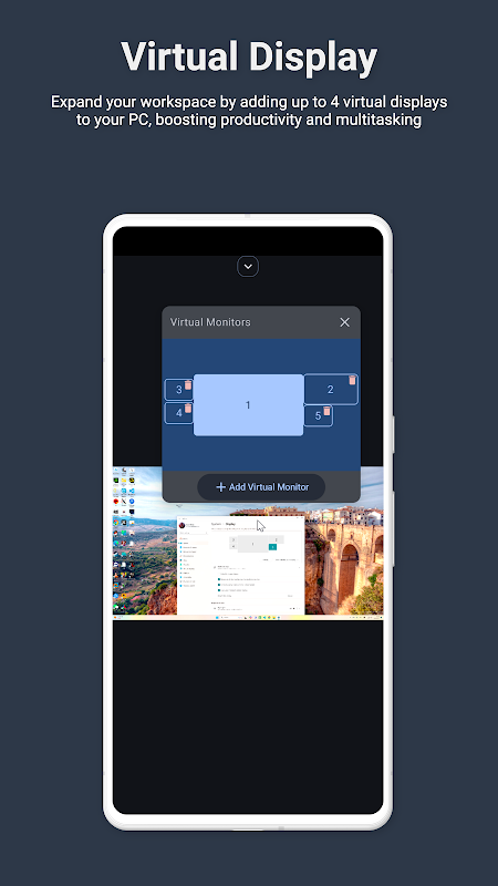 * Gestion multi-écrans : Étendez votre espace de travail en ajoutant jusqu'à 4 écrans virtuels à votre PC, pour une productivité et un multitâche optimisés.