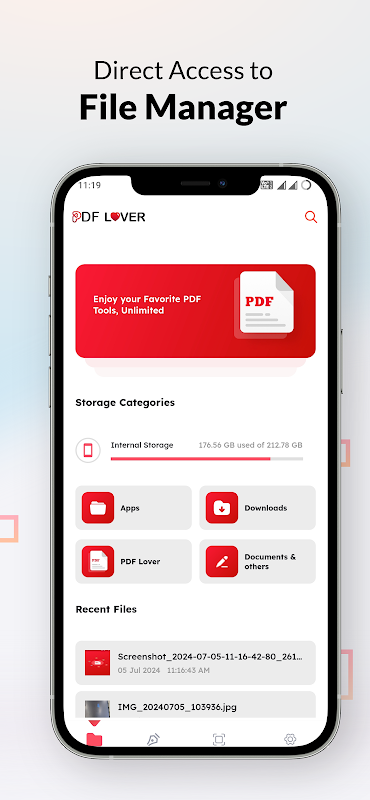 - Lecteur PDF : affichez, modifiez et mettez à jour les fichiers PDF stockés sur votre appareil à tout moment.