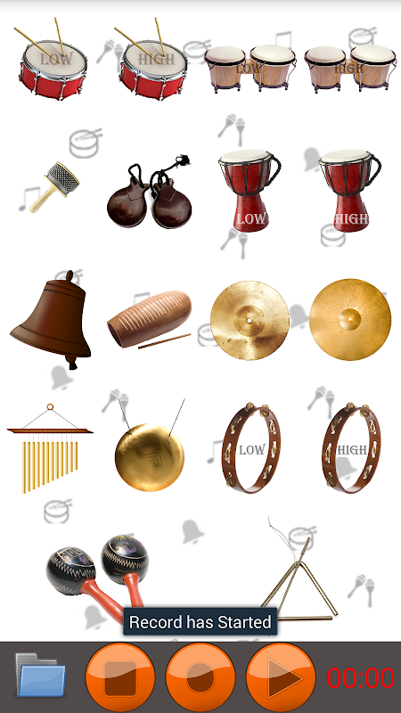 In addition to its touch and play feature, you may also shake your phone to play the instruments. After picking an instrument in the list, just shake your phone to play the instrument. You may also pick one instrument as instrument count and record your music, made by you shaking the chosen percussion instrument.