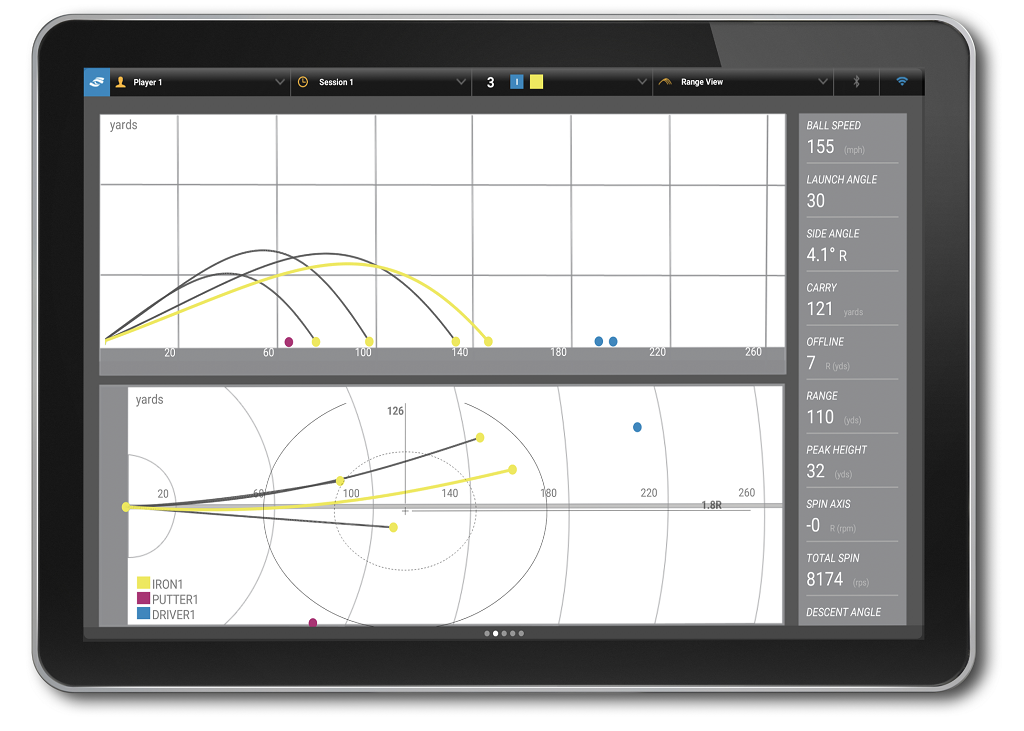 * Displays detailed Launch, Trajectory and Club data