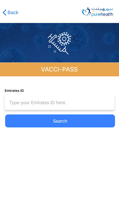 As a solution, Pure Health is providing this mobile application where individuals can search for their local test results conducted by Pure Health.