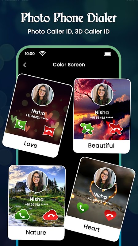 Personnalisez le contact avec un design personnalisable pour l'écran d'arrière-plan de l'appelant. Composeur de téléphone photo avec votre photo et vidéo. L'application fournira un appel entrant élégant. Flash LED et écran de numérotation de réglage, écran entrant, flash de téléphone couleur. Vous pouvez remplacer vos pavés téléphoniques ennuyeux par votre photo ou votre arrière-plan.