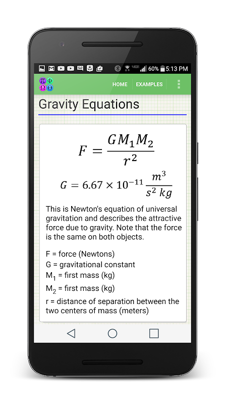 It also has a powerful calculator that can evaluate expressions with units and a comprehensive, searchable database of equations, each with an example problem and a solver feature.