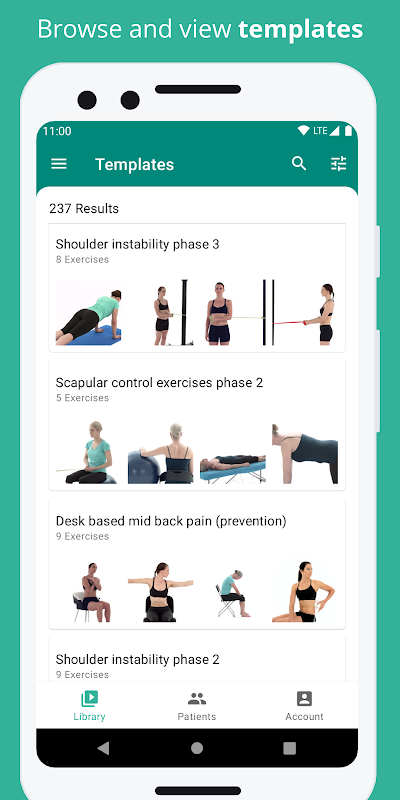 - Parcourez la bibliothèque complète d'exercices Physitrack de plus de 10 000 vidéos cliniques et lisez-les sur des écrans externes (si pris en charge par votre appareil).