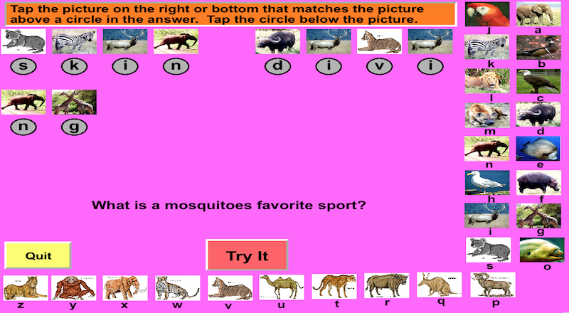 Solve riddles and learn word definitions by tapping on code pictures.
