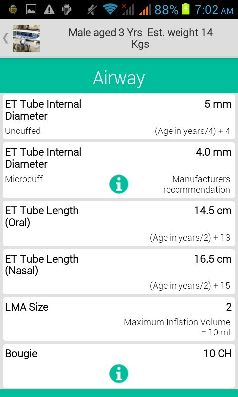 • Si le poids est pas connu l'application fournira un «poids« au moyen de votre préférence de l'avancée de pédiatrie Life Support (APLS) formules ou le 50e centile pour l'âge et le sexe de l'Organisation mondiale de la Santé (OMS) courbes de croissance