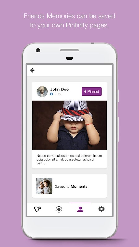 Pinfinity est votre Memory Box numérique. Un enregistrement des événements de votre vie.