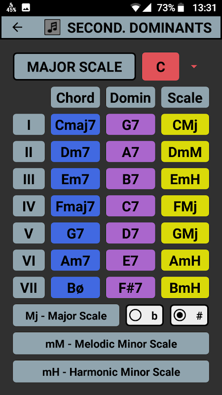 Sélectionnez une gamme majeure. Découvrez les dominantes secondaires de chaque accord de cette gamme majeure et la gamme que vous pouvez jouer par rapport à ces dominantes secondaires.