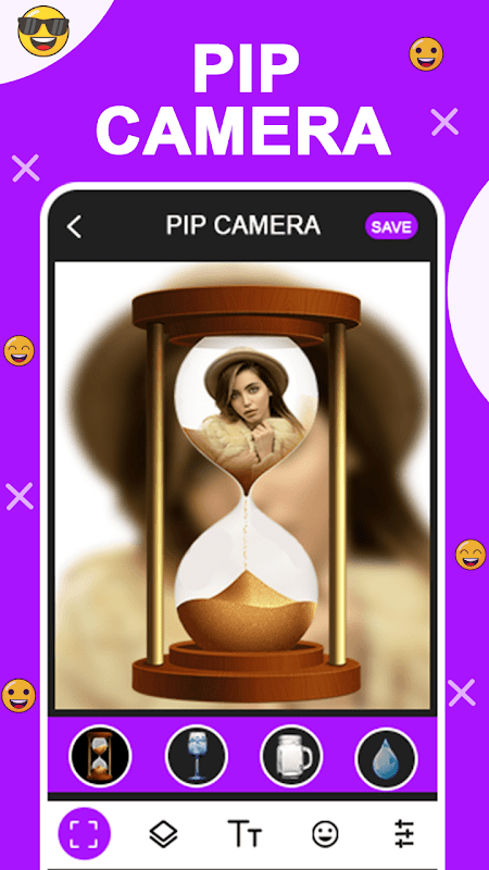 many more PIP Camera includes plenty of trendy stickers like love, animal, food and many more. Add your favorite emoji to your photo and make that funny. Design your own photo creation by adding or changing the text on it.