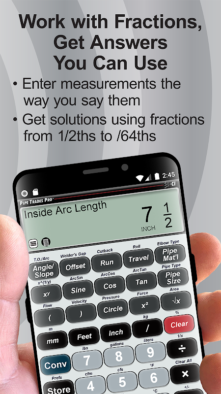 Pipe Trades Pro Calculator simplifie les calculs complexes en procédures simples et rapides, vous permettant de consacrer plus de temps aux tâches pratiques et moins de temps à traiter les chiffres. Exploitez les avantages de l’innovation technologique et améliorez l’efficacité et la précision de votre journée de travail avec le calculateur Pipe Trades Pro.