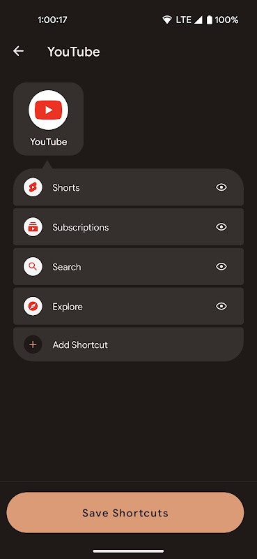 • Shortcuts are now separate from apps and include search history.