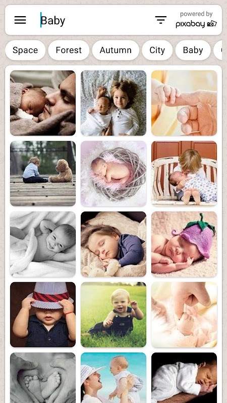 PixPaper features fast and user friendly search, full screen preview image, and easily set as wallpaper, save to device or share through any other application you have.