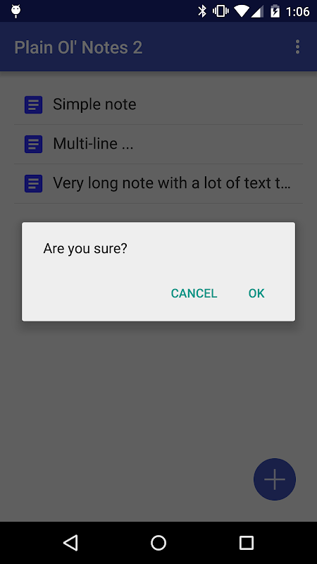 Ce est la version 2 de Plain Ol 'Notes, une application de prise de notes simple pour Android. Construit avec Android en studio et en ciblant Android 5.1 Lollipop, cette application est créée dans le cadre du cours de formation lynda.com «Construire une prise de notes pour Android App".