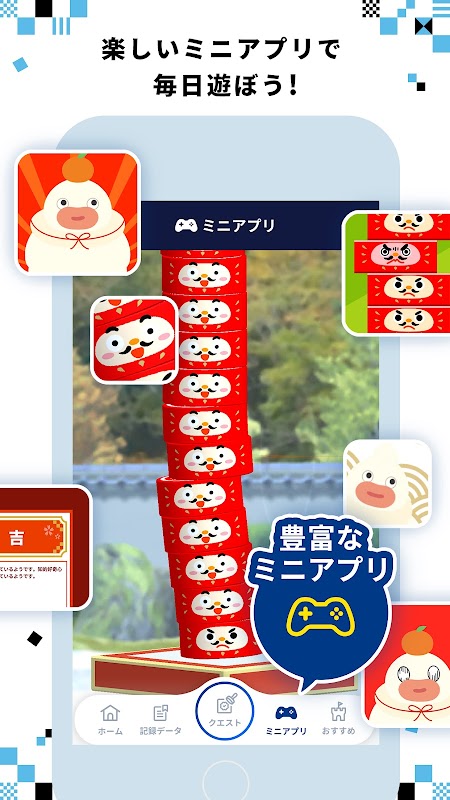 Vous pouvez profiter de jeux qui vous permettent de jouer aux attractions du parc sur votre smartphone, ainsi que de fortunes qui peuvent être tirées chaque jour. D'autres mini-applications seront ajoutées les unes après les autres à l'avenir.